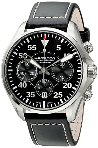 -. Binding : Watch -. Brand : Hamilton -. Department : mens -. EAN : 7640127756218 -. Feature : Round watch featuring trio of textured subdials with chronograph function and date window at 6 o'clock position / 42 mm stainless steel case with antireflective-sapphire dial window / Automatic self-wind movement with analog display / Contrast-stitched leather calfskin band with buckle closure / Water resistant to 200 m (660 ft) -. Label : Hamilton -. Manufacturer : Hamilton -. Model : H64666735 -. MPN : H64666735 -. PartNumber : H64666735 -. ProductGroup : Watch -. ProductTypeName : WATCH -. Publisher : Hamilton -. SKU : 680 -. Studio : Hamilton -. Title : Hamilton Men's H64666735 Khaki Aviation Stainless Steel Automatic Watch with Black Leather Band