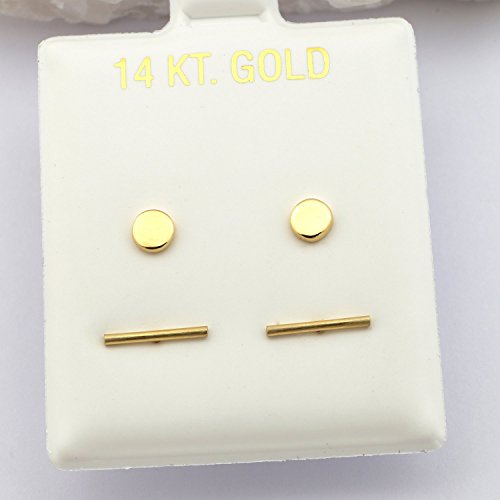-. Binding : Jewelry -. Brand : Beauniq -. Department : womens -. Feature : This set comes with two pairs of stud earrings. Everything in the set is made of solid 14k gold. This set is available in yellow or white gold. / On the circle earrings: the diameter of the circle is 4mm, the post is 10mm long, the weight of the earrings is 0.6g. / On the wire bar earrings: the bar measures 1mmx10mm, the post is 9mm long, the weight of the earrings is 0.3g. / Comes with a gift box and free shipping. -. ProductGroup : Jewelry -. ProductTypeName : FINEOTHER -. Title : 14k Yellow or White Gold Circle and Wire Bar Stud Earrings Set