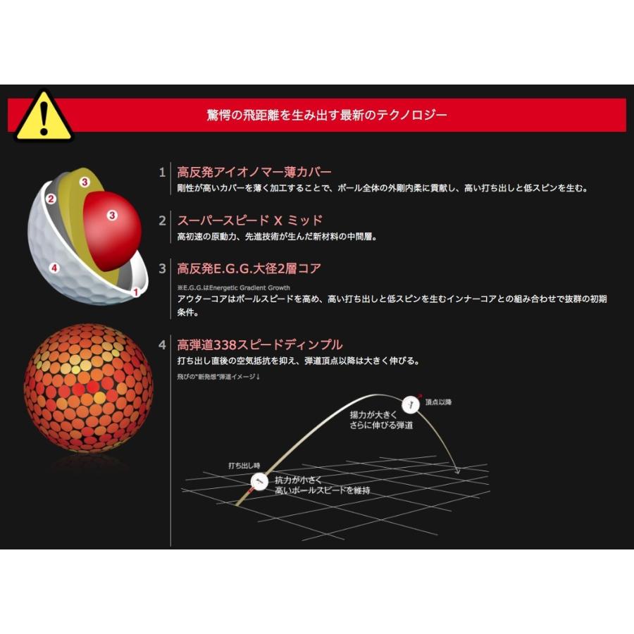 空力特性に非常に優れた「スリクソン Z-STARシリーズ」や「ゼクシオ SUPER SOFT X」と同配列のディンプル、高反発を生む薄カバー、「スリクソン -X-」専用2層コア、高初速を生む新材料のミッド層など、独自の飛びの技術を集結させることで、当社史上最大※1のドライバー飛距離を生むR&A※2公認のゴルフボールが誕生しました。
