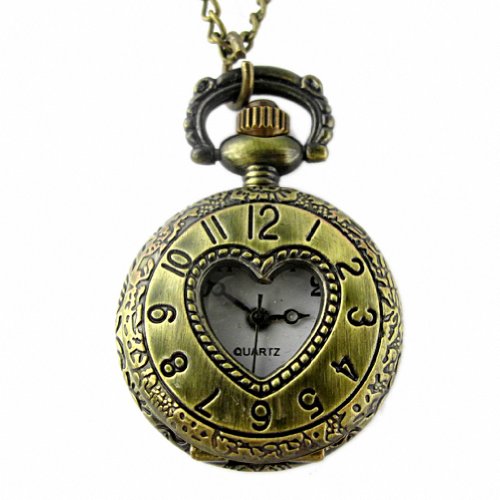 -. Title : Youyoupifa Bronze Cut Out Heart Half Hunter Case Stylish Retro Design Quartz Pocket Watch NBW0PF7127-CO3