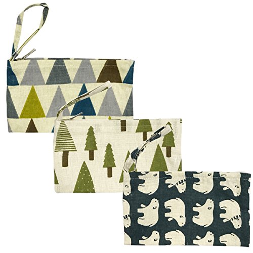 ALLYDREW Linen Makeup Bag Pencil Case Pouch Purse (Set of 3), Arctic Nature