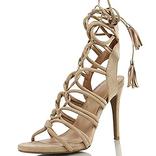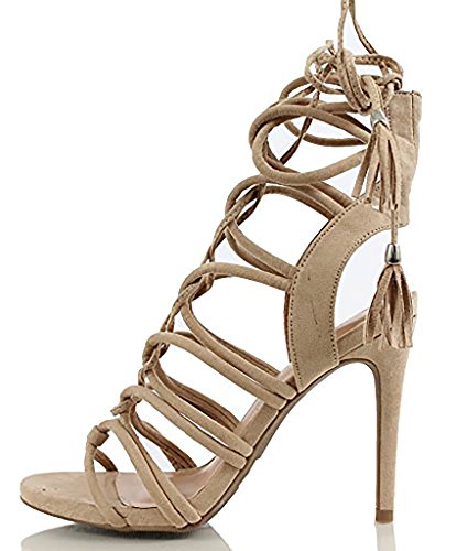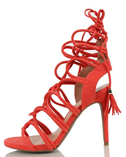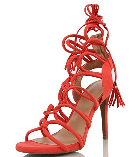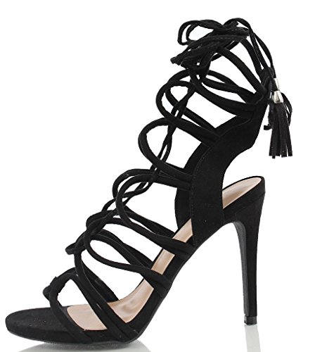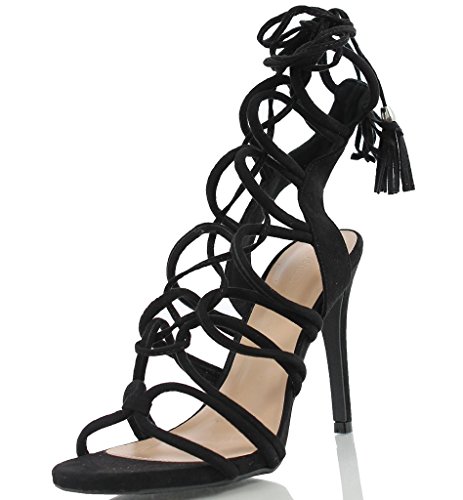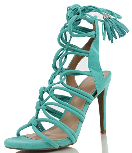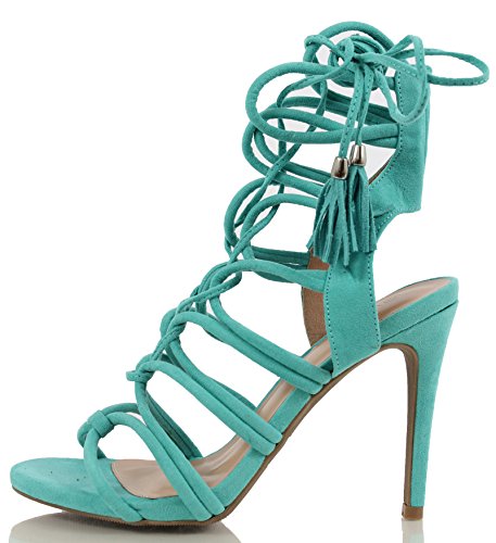 Wild Diva Women's Berlin 72 Gladiator Strappy Lace Up Tie High Heel