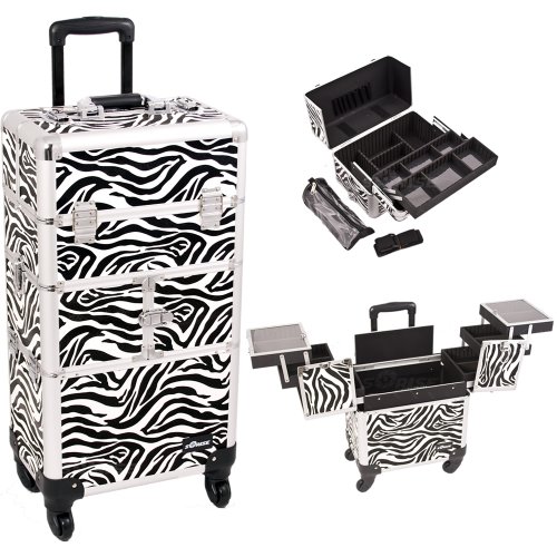 - Beautiful new zebra printing pattern with silver aluminum trimming Heat resistant exterior material keeps the case cool and protects your cosmetics Heavy duty handle for added comfort and grip