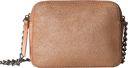 Stay on trend with the drapey small crossbody. This great mini bag is perfect for a night out! the studded leather strap and chain detail add just the right amount of edge to this classic camera style silhouette. Features a full top zip and lined interior. Offered in bold suede, metallic washed suede and flirty shimmer.