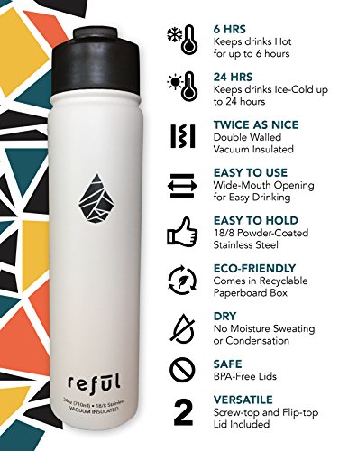 If you are ecologically conscious, love the outdoors, describe yourself as a beverage aficionado, or simply prefer your drink to stay hot or cold for long periods of time, then the Reful Vacuum Insulated Stainless Steel Bottle is for you!