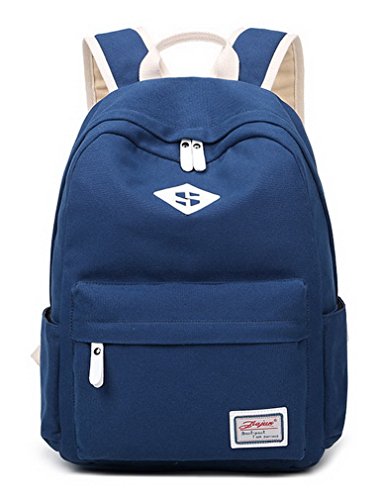 -. Feature : This backpack is made of canvas and its water proof. / Double Zipper,it will still work even one zipper is broken,more durable. / It has two side pockets for a bottle or any small items and also a front pocket for phone, keys or other small items. / More enough space for school books,binder and papers, and the extra interior pocket is perfect for a 14 inch tablet or laptop. / The Straps are adjustable and have cushion,keep shoulder feel comfort even a long time use, and can be adjusted for any size from adult to child.