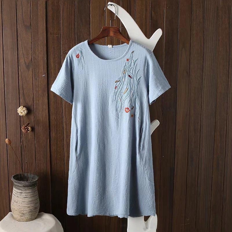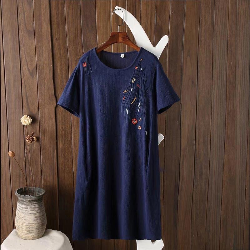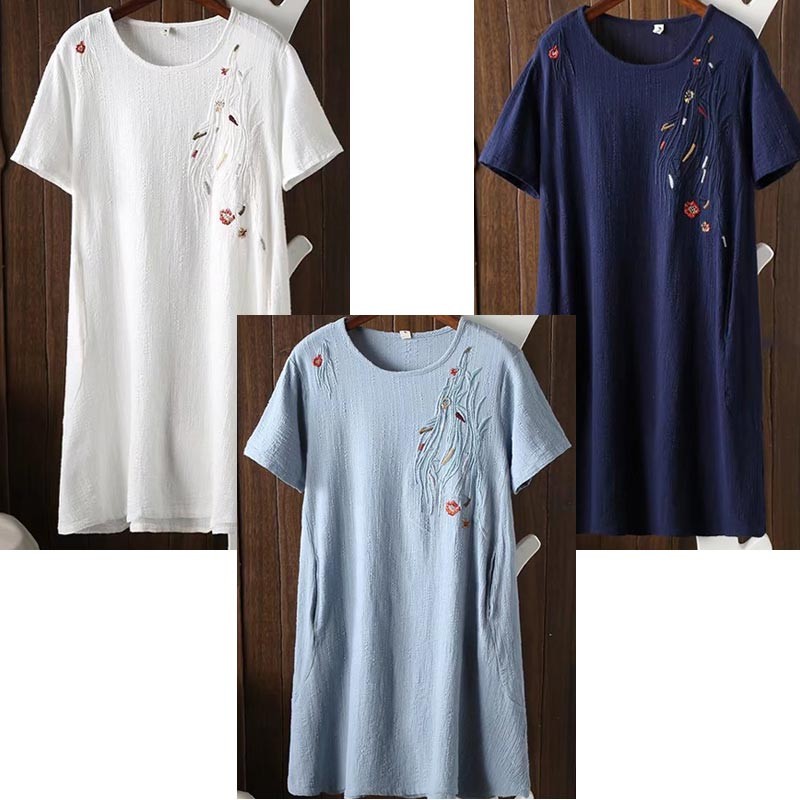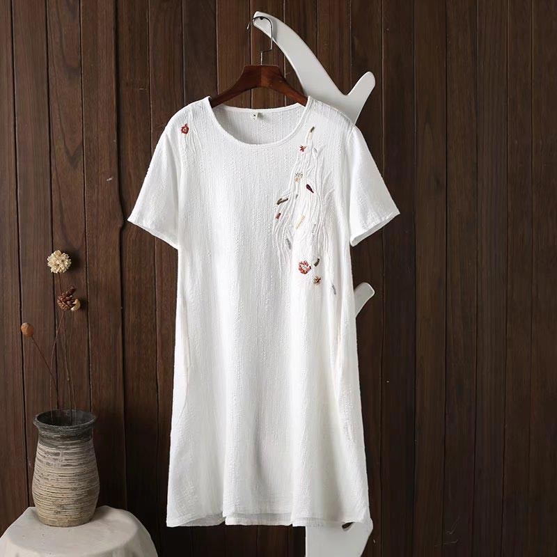 肩口から胸にかけてボタニカル刺繍デザインのストンとしたシルエットのワンピ♪