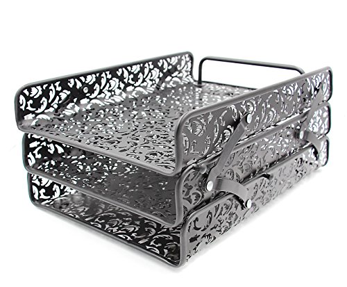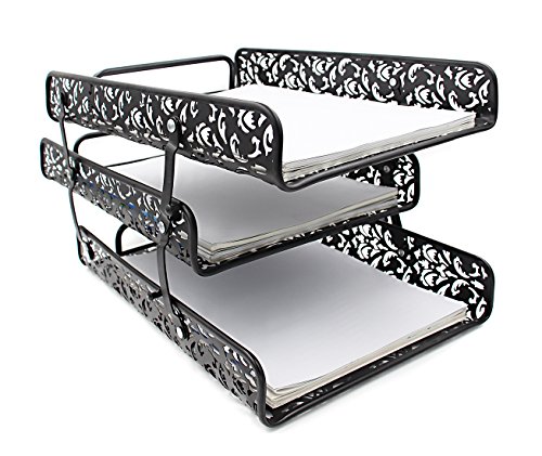 EasyPAG 3 Tier Desk Letter Tray Carved Hollow Flower Pattern Design Triple Letter Tray ,Black