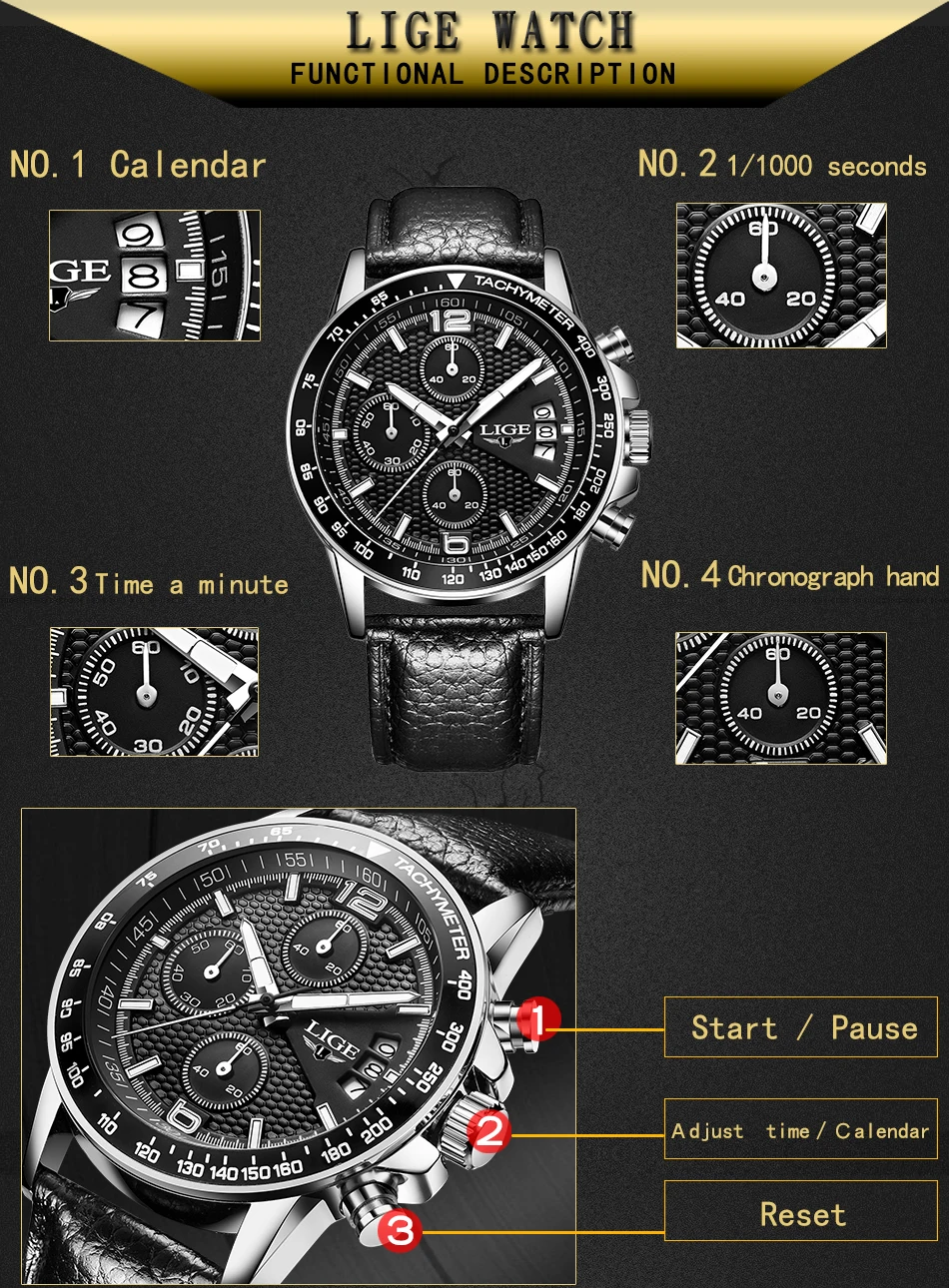 Feature:Water Resistant,Shock Resistant,Stop Watch,Complete Calendar,Swim,Luminous Hands