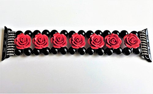 -. Title : Amor Exquisite Replacement Beaded Fashion Flexible Bracelet Style Band/Strap For 42mm Apple Watch With Red Rose Designs On Beaded String Compatible With Series 1, Series 2, Series 3