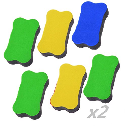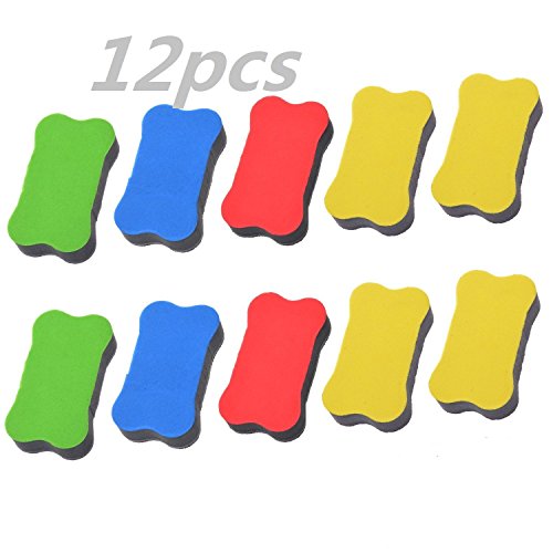 Ellami Pack of 12pcs Random Color Magnetic Small Whiteboard Dry Erasers - 2 3/4 x 1 9/16 Inches
