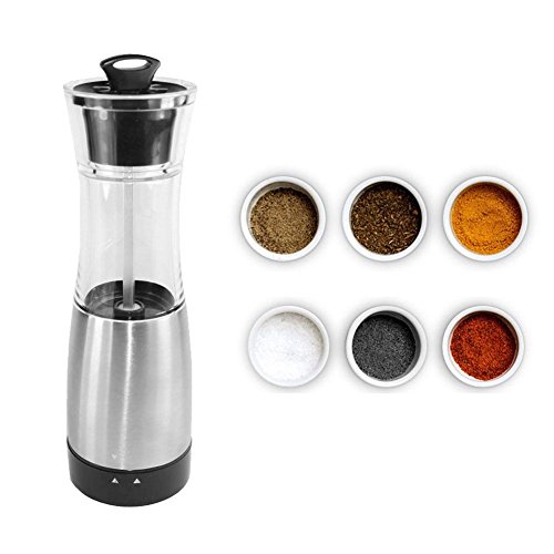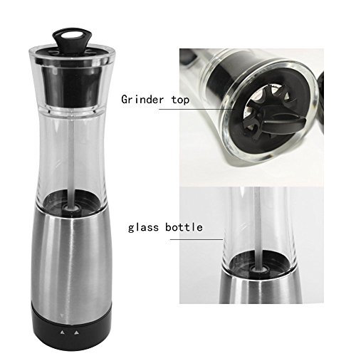 Convenience and Durability - Pepper mill is fully automatic and you can easily grind all salt, pepper, spices and herbs with the click of a button. Corrosion-resistant high-quality stainless steel shell, thick glass bottles. Easy to clean.
