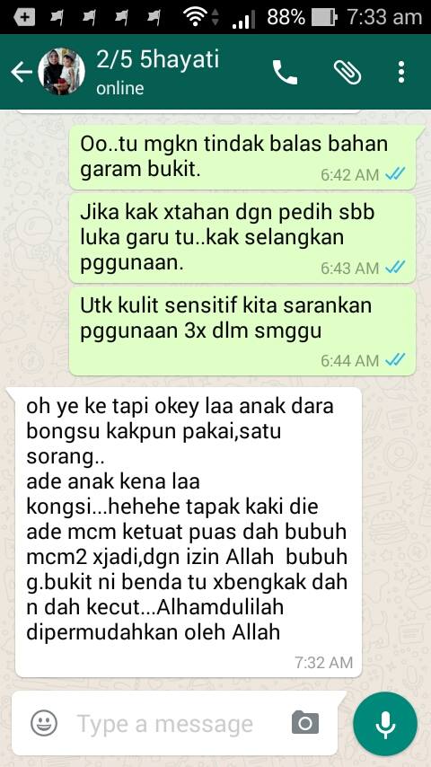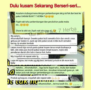 Tidak hairanlah ramai pengguna di Malaysia kini mengakui kehebatan Garam Bukit 7 Herba ini dalam menyelesaikan masalah muka seperti jeragat, jerawat, parut, kulit kusam dan wajah gelap yang susah nak di rawat…