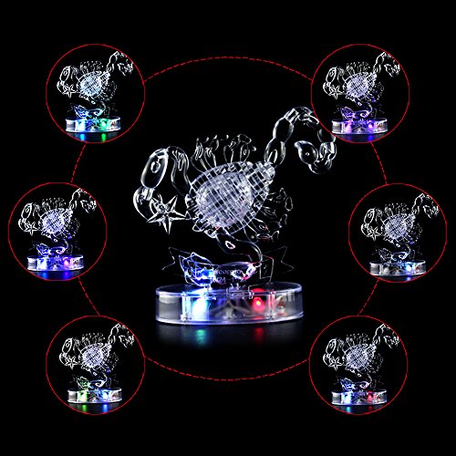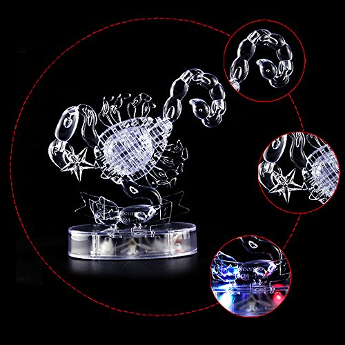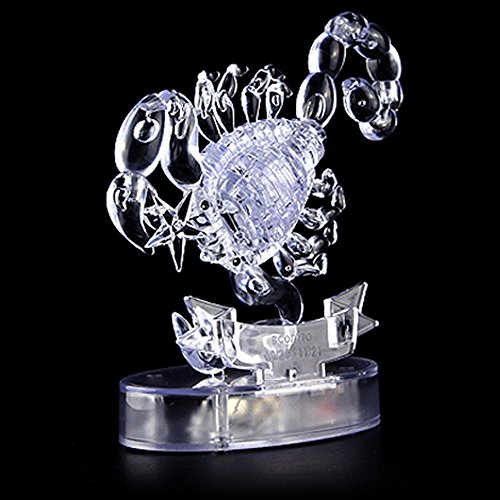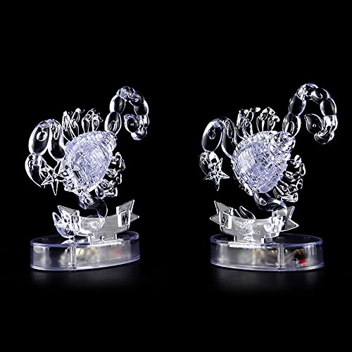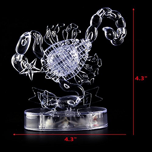 -. Feature : Flash Scorpio 3D Crystal Puzzle includes 43pcs / Enjoyable to work on, challenging to complete, fun to display / Delight your mind and eyes,beautiful enough to adorn any room / Product Dimensions: 4.3" x 4.3" / Package included: 1x 3D Flash Scorpio Crystal Puzzle ( battery included), 1x Instruction Manual