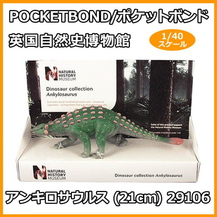 アンキロサウルスが1/40スケールで登場!!プレゼントにもピッタリです♪ 製造国:中国 素材・材質:PVC 商品サイズ:幅55×長さ210×高さ75mm 仕様:対象年齢:3歳以上スケール:1/40 ※サプライヤー直送品 ご注文後2~3営業日後の出荷となります【商品名】POCKETBOND/ポケットボンド 英国自然史博物館 アンキロサウルス (21cm) 29106