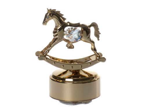 ROCKING HORSE 24K GOLD-PLATED SWAROVSKI CRYSTAL ROTATING MUSICAL FIGURINE