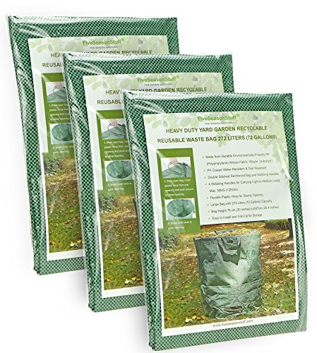 FiveSeasonStuff 3-Pack 72 Gallons Heavy Duty Reusable Garden Waste Bags with Stable Opening Support