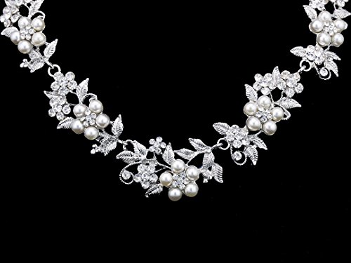 -. Binding : Jewelry -. Brand : Venus Jewelry -. Department : womens -. EAN : 0028672907304 -. Feature : Made with clear rhinestone crystals and faux pearls in a silver tarnish resisting rhodium plated metal setting. / The necklace can be adjusted from approximately 15" to 18-1/2" inches for a perfect fit. / The center drop of the necklace is about 1". / The matchig pierced earrings is about 1-1/8" in height. -. Label : Venus Jewelry -. Manufacturer : Venus Jewelry -. Model : N336 -. MPN : N336 -. PackageQuantity : 1 -. PartNumber : N336 -. ProductGroup : Jewelry -. ProductTypeName : FASHIONOTHER -. Publisher : Venus Jewelry -. Studio : Venus Jewelry -. Title : Flower Leaf Bridal Prom Pearl Crystal Choker Necklace Earrings Set N336 -. UPC : 028672907304