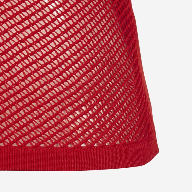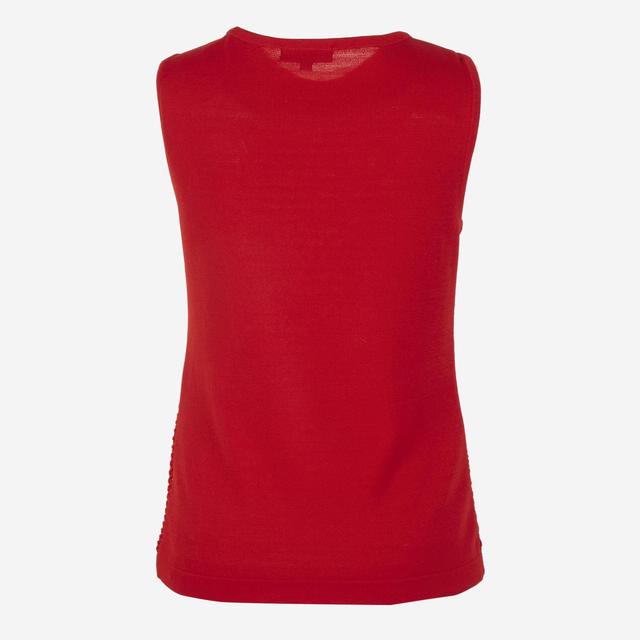 성근 짜임의 메쉬 니트 바탕에 도트 로고 장식으로 포인트를 준 베스트입니다.