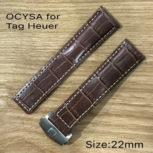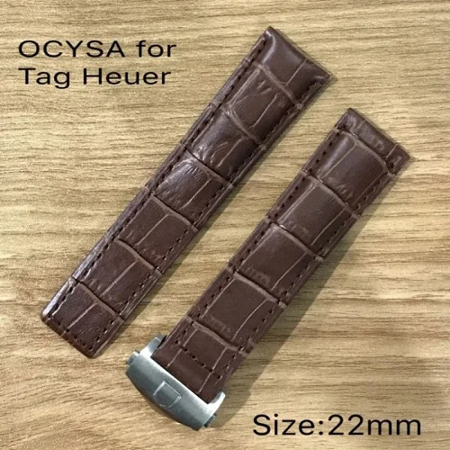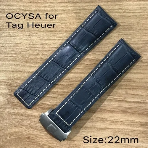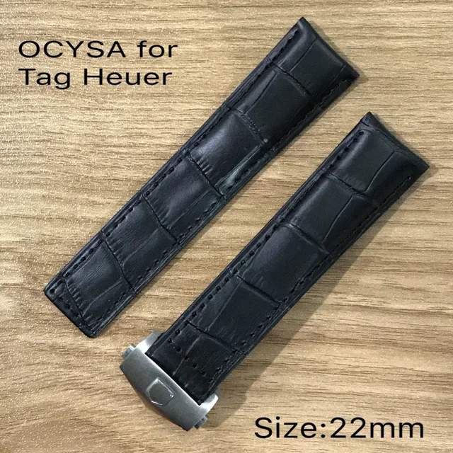 | [해외]OCYSA 높은 품질의 악어 곡물 가죽 시계 스트랩 heuer, 정품 부드러운, 실버 나비 걸쇠 |