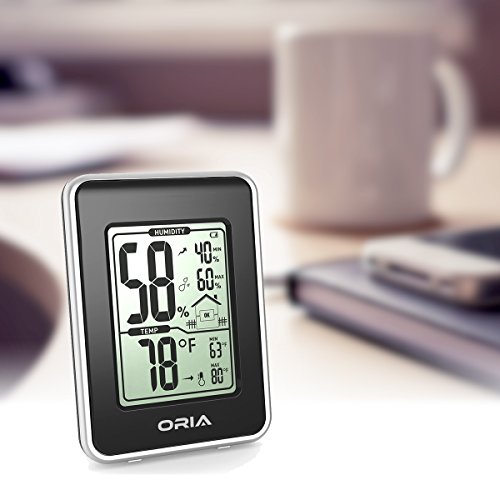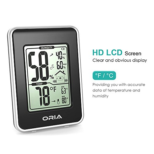 WEATHER STATION, ORIA® INDOOR DIGITAL HYGROMETER THERMOMETER, HYGROTHERMOGRAPH, MULTIFUNCTIONAL TEMPERATURE AND HUMIDITY MONITOR WITH MIN/MAX RECORDS + LARGE LCD SCREEN (BLACK)