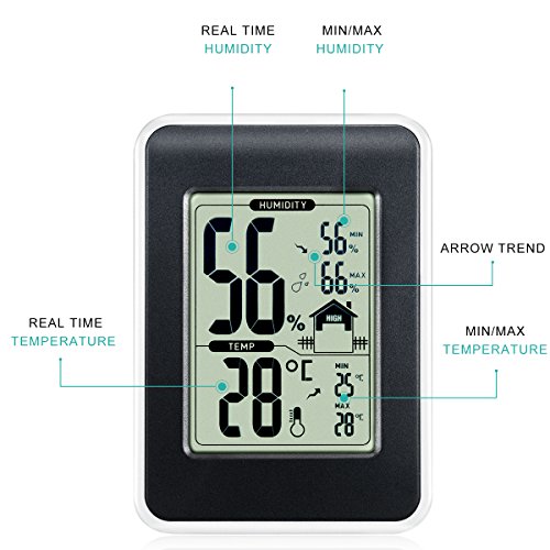 • Designed For Indoor Use - This unit features an easy-to-read display with numerical readouts as well as rate of change indicators and Comfort level icon. Providing you with accurate data of temperature and humidity