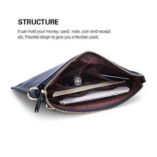 - Wallet structure: 1 zipper main bag (including 1 zipper pocket + 2 pocket) +3 back zipper patch pocket. It can hold your money,card, note, coin ,cell phone and receipt etc. Flexible disign to give you a flexible used.