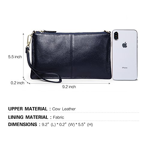 - Wallet size: 9.2"(L)*0.2"(W)*5.5"(H). The weight is 0.62 pounds. Wrist strap length is 6.4"-20.5". Fit your phone, id, smartphone , money, cards, lipstick, small brush and my keys in it. This is the perfect size to use when traveling.
