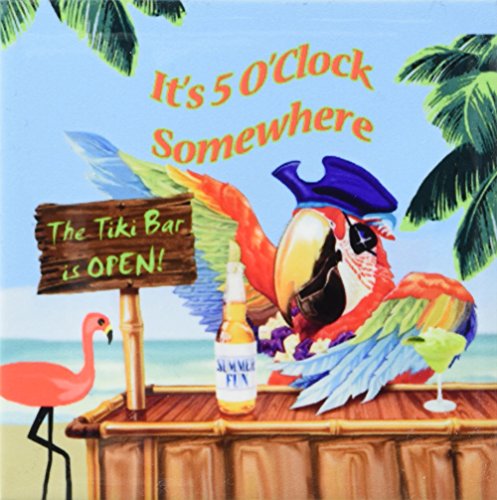 3dRose cst_18918_3 Pirate Parrot in Paradise Ceramic Tile Coasters, Set of 4