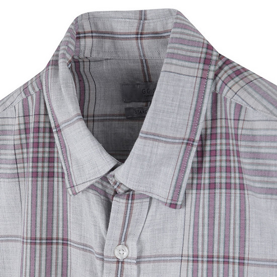 - 컬러 체크 패턴 디자인을 적용한 남성 셔츠.