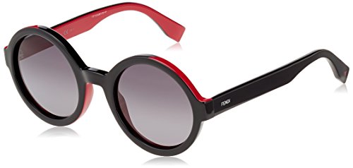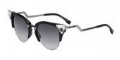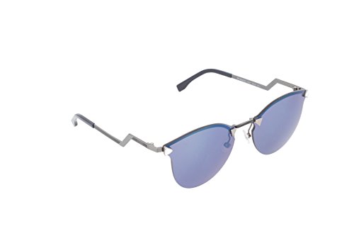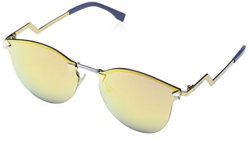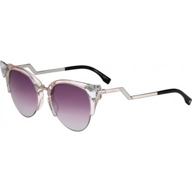 Retro style meets striking glamour on these unique Fendi sunglasses. Transparent plastic curves around the semi-rimless lenses, and prismatic crystals shine from the temple edges. Logo lettering at shiny zigzag arms. Case and cleaning cloth included.