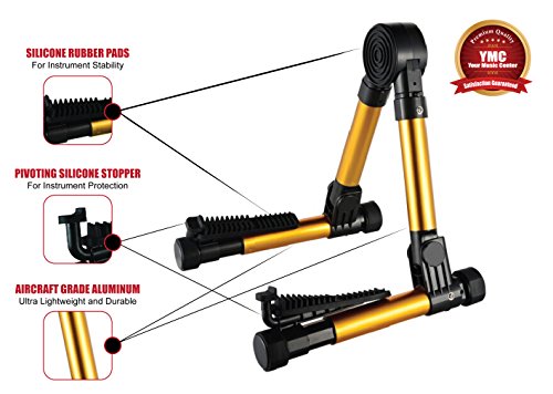 - Feature : Strong Aluminum Guitar stand from YMC - Premium folding stand recommended for most acoustic & electric guitars, violins, ukuleles, bass's, banjos and mandolins / Fits a variety of instruments due to its multi-stretch features - Folds to compact portable size in matter of seconds (10.5" x 3.5") / Ultra lightweight and durable stand made of 1" aircraft-grade aluminum tubing (Weight: Less than 1 lb) / The perfect all-around stand - Ideal for home, studio, work and travel / Soft silicone pads to protect your valuable instrument
