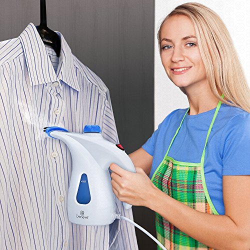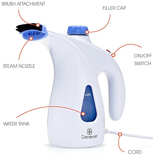 NEW & IMPROVED! SAFER TANK and SPOUT to minimize hot water dangers! Easy to use, lightweight, and balanced fabric care, the Deneve household steamer is designed to make removing wrinkles a cinch. With an INCREDIBLE heating time of only 2 minutes, the portable steamer is ready to bust wrinkles almost instantly. The compact design allows for easy storage and travel, and the 9-foot power cord allows you to reach anywhere! This is the ULTIMATE garment steamer.