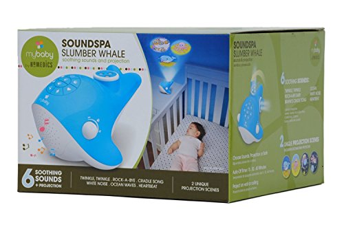 ReleaseDate : 2014-07-01 Studio : HoMedics Publisher : HoMedics Binding : Baby Product Product Description The myBaby soundspa slumber whale projection and noise machine includes three soothing natural sounds for your baby: heartbeat, white noise, ocean. Additionally, there are three tender lullabies: twinkle, twinkle little star; rock-a-bye baby; brahm's cradle song. Motion picture projector includes two unique image scenes: space and ocean. Choose sounds, projection or both combined. 15, 30 or 60 minute auto-off timer. 0
