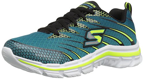 Skechers Kids Boys' Nitrate Running Shoe, Turquoise/Black, 12 M US Little Kid
