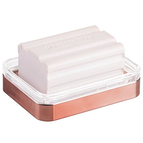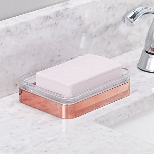 InterDesign Casilla Bar Soap Dish for Bathroom Countertop, Vanity, Kitchen Sink - Clear/Rose Gold