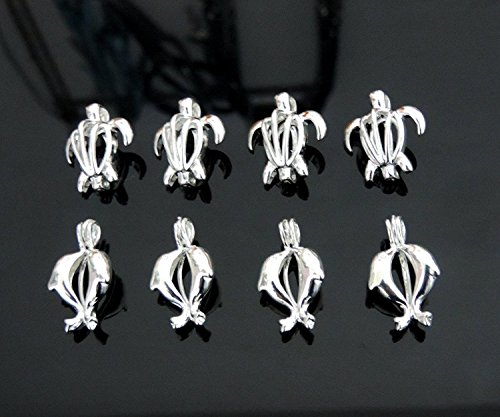 10pcs Mix Tortoise Dolphin Jewelry Making Supplies Silver Plated Bead Cage Pendant - Add Your Own Beads, Stones, Rock to Cage,Add Perfume and Essential Oils to Create a Scent Diffusing Pendant Charms