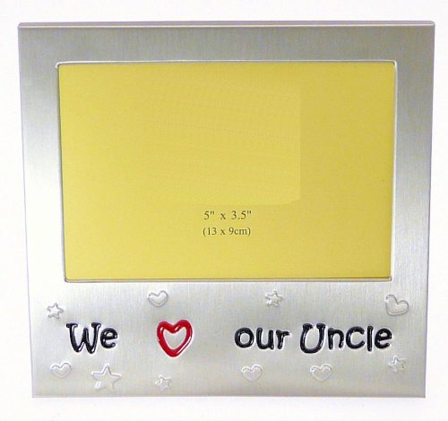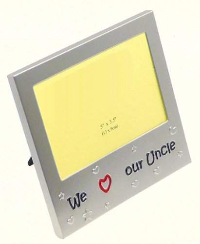 We Love Our Uncle - Photo Picture Frame Gift - 5 x 3.5 " - Brushed Aluminum Satin Silver Colour. A really beautiful superior quality frame made of Aluminum and finished in a brushed satin silver colour.