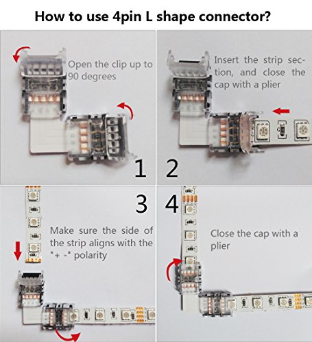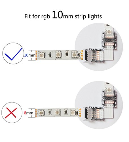 - This led strip connector (AC-SE series) suitable for 4pin 10mm NON- WATERPROOF LED strip lights. L Shape provides a perfect 90 degree bend between two strip lights without the need for soldering