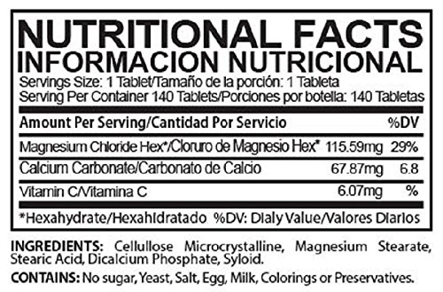 -. Binding : Health and Beauty -. Brand : Cloru-Mag Plus -. EAN : 0794168839304 -. Feature : Supports the Immune System / Keeps healthy bones and teeth / It has a calming effect on the Nervous System / Keeps the heart healthy / Produces energy and rejuvenation -. IsAdultProduct : 0 -. Label : NVL -. Manufacturer : NVL -. MPN : NVL 04 -. PartNumber : NVL 04 -. ProductGroup : Health and Beauty -. ProductTypeName : HEALTH_PERSONAL_CARE -. Publisher : NVL -. Studio : NVL -. Title : Magnesium Chloride tablets - Cloru-Mag Plus - Pack of 6 bottles - Cloruro de Magnesio -. UPC : 794168839304