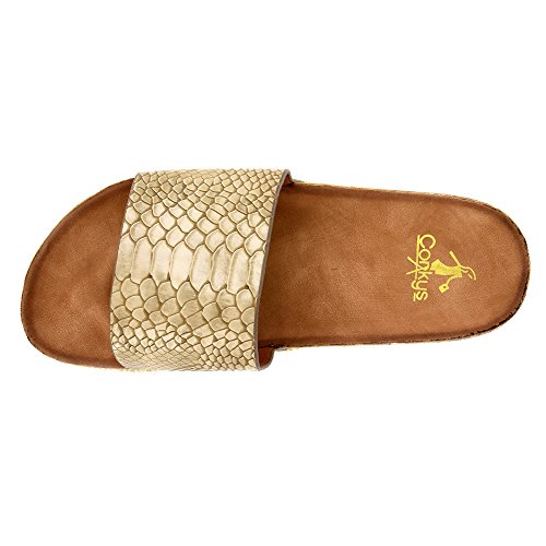 Product DescriptionThese Corkys Women's Sophia Taupe Slip-On Sandals feature a comfortable foam footbed, a rubber and cork sole.0