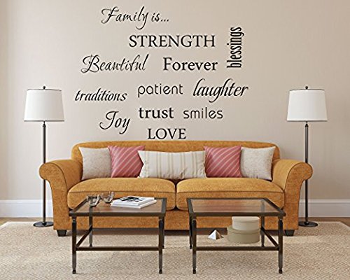 Family Is ...Beautiful Love Strength 12 Family Words Quotes Wall Decal for Home Decor