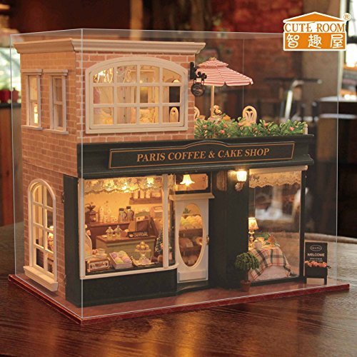 -. Title : Cuteroom DIY Kits Wooden Dollhouse Miniature With music and Cover --Paris Coffee Shop by Cuteroom