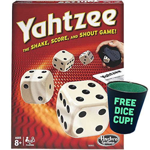 -. Binding : Toy -. Brand : Hasbro -. EAN : 0796520338791 -. Feature : Classic Yahtzee Game / Score big by rolling a "Yahtzee" (Five-Of-A-Kind) / A game of luck and strategy / Recommended for two or more players ages 8 and up / Comes with a free dice cup -. IsAdultProduct : 0 -. Label : Hasbro -. Manufacturer : Hasbro -. ProductGroup : Toy -. ProductTypeName : TOYS_AND_GAMES -. Publisher : Hasbro -. Studio : Hasbro -. Title : Yahtzee Classic w/free dice cup -. UPC : 796520338791