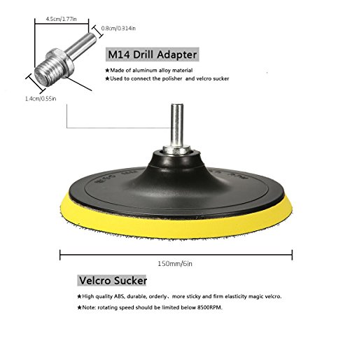 - PACKAGE INCLUDES:6inch Polishing woolen buffer with 3 pack,1 adhesive backer pad,1 M14 drill.Cleaning products with 15-25 degrees water.
