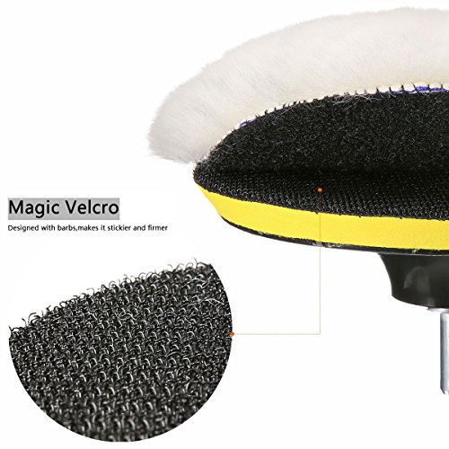 - EASY TO USE:Can be used in pneumatic or electric polishing machine.Used for Auto car detail polishing.Adhesive backing, you can change pads just in seconds.The back of the disk has velcro, so you can easily change the woolen buffer pad.
