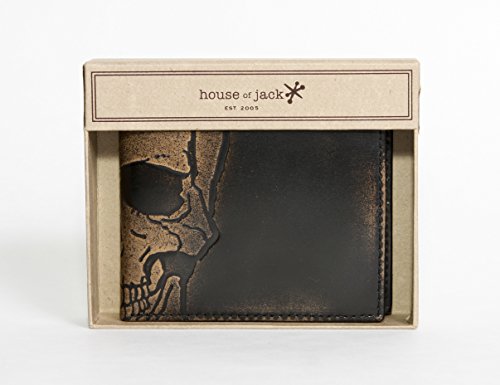 -. Binding : Apparel -. Brand : House of Jack Co. -. Color : Black -. Department : mens -. EAN : 0850558006135 -. Feature : Embossed Skull Graphic Design - Handcrafted by Artisans / Double ID Window Fold Out Construction - Convenient for DL & Work/School ID / Full Grain Leather with Hand Burnished Finish / Screen P.R.Inted Tan Canvas Lining ... "No Regrets" / 8 Card Slides, 2 Receipt Pockets, 2 ID Windows (DL & Work/School ID) with Thumbhole, Bill Compartment -. Model : 6135 -. MPN : KAL53839 -. PackageQuantity : 1 -. PartNumber : KAL53839 -. ProductGroup : Apparel -. ProductTypeName : ACCESSORY -. Title : House of Jack Co. Embossed SKULL DOUBLE ID Bifold Men's Wallet - Multifunction Design - Hand Burnished Finish -. UPC : 850558006135
