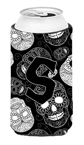 Letter S Day of the Dead Skulls Black Tall Boy Beverage Insulator Hugger CJ2008-STBC