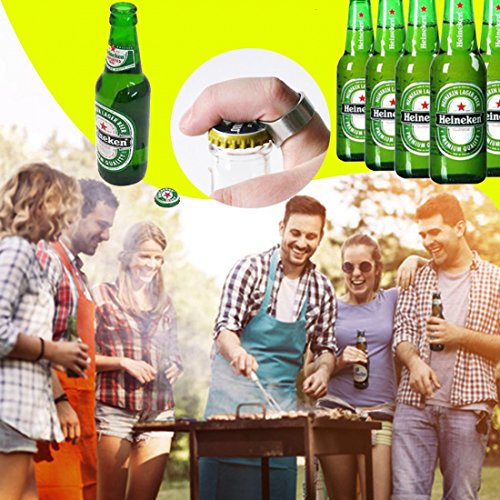 Studio : Mosuch Publisher : Mosuch Product Description This brushed steel wall mounted bottle opener will make opening bottles easier and safer than prying it open with your teeth. Complete your kitchen, looks bold in a man cave or on your patio. Easy and fast opening of standard-sized bottle caps. It used to open the beer bottles, lightweight, easy to carry and convenient to use? Finger ring design? Material: stainless steel? Color: silver? Diameter: approx. 22mm? Package include: 1 x pcs of bottle opener