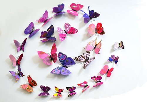 - Title : 24Pcs Butterfly New Home Decoration DIY Removable 3D Vivid Special Man-made Lively Butterfly Art DIY Decor Wall Stickers for home Room Pink,Purple